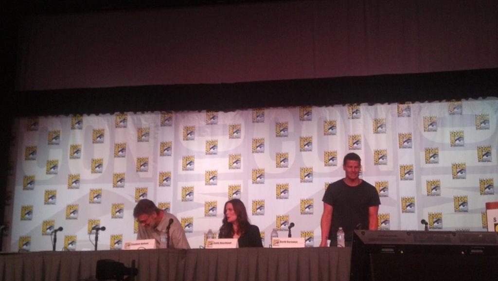 1:55 PM – David Boreanaz (Booth), Emily Deschanel (Brennan) and executive producer Stephen Nathan are introduced. (BONES creator Hart Hanson couldn’t make it for health-related reasons.)